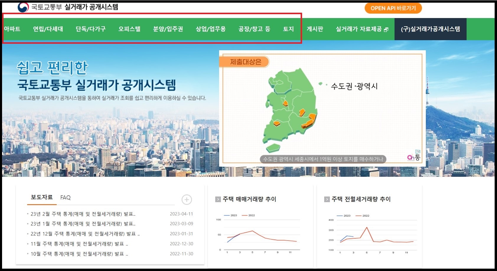 2. 아파트, 연립/다세대, 단독/다가구, 오피스텔, 분양/입주권, 상업/업무용, 공장/창고, 토지 등 다양한 형태의 부동산에 대한 실거래가 조회가 가능합니다.