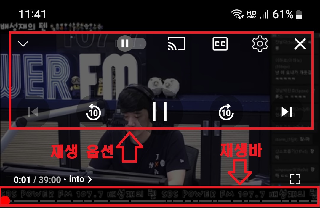 유튜브에서 동영상을 재생하면 화면에 아래와 같이 재생바 및 해당 동영상의 재생을 조작할 수 있는 다양한 옵션이 나타나서 시청에 방해를 받는 경험을 한 분들이 많을 것이라고 생각합니다. 그래서 이 글 아래에서는 유튜브에서 동영상을 재생 시 자동으로 나타나는 재생바를 나타나지 않게 하는 방법 및 나타나더라도 사라지는 시간을 설정하는 방법에 대해서 알아보도록 하겠습니다.