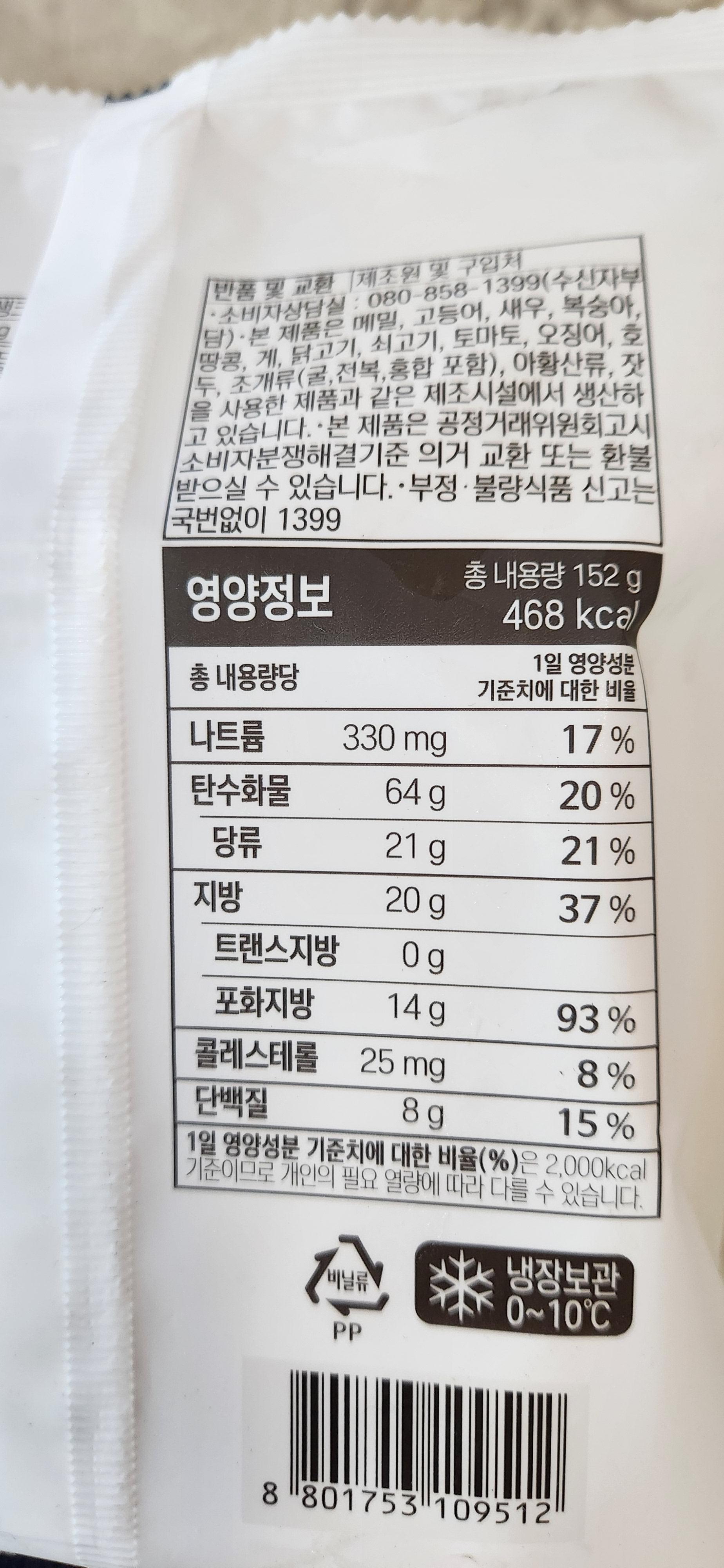 칼로리는 개 당 468kcal. 포화지방이 어마어마하다.
