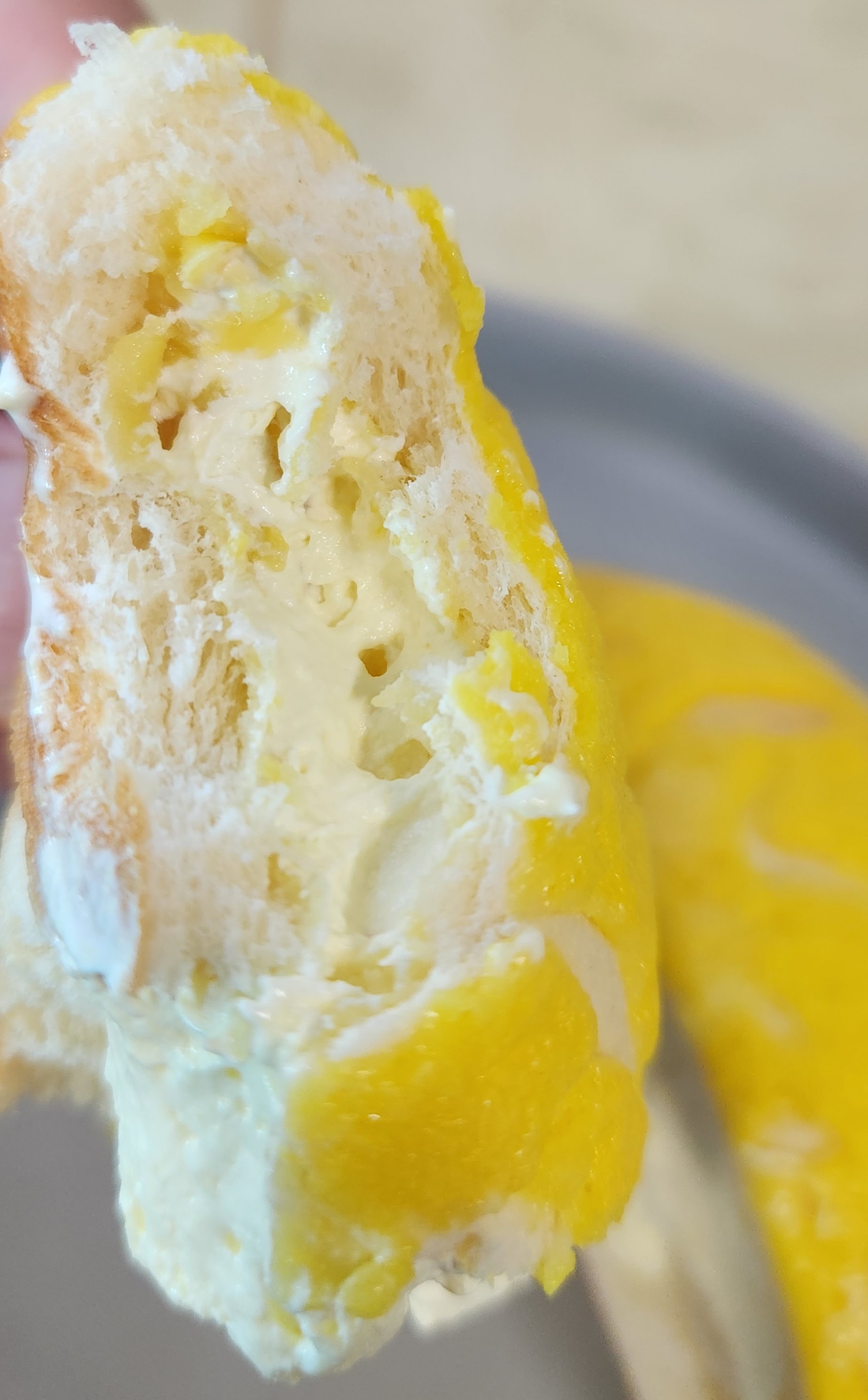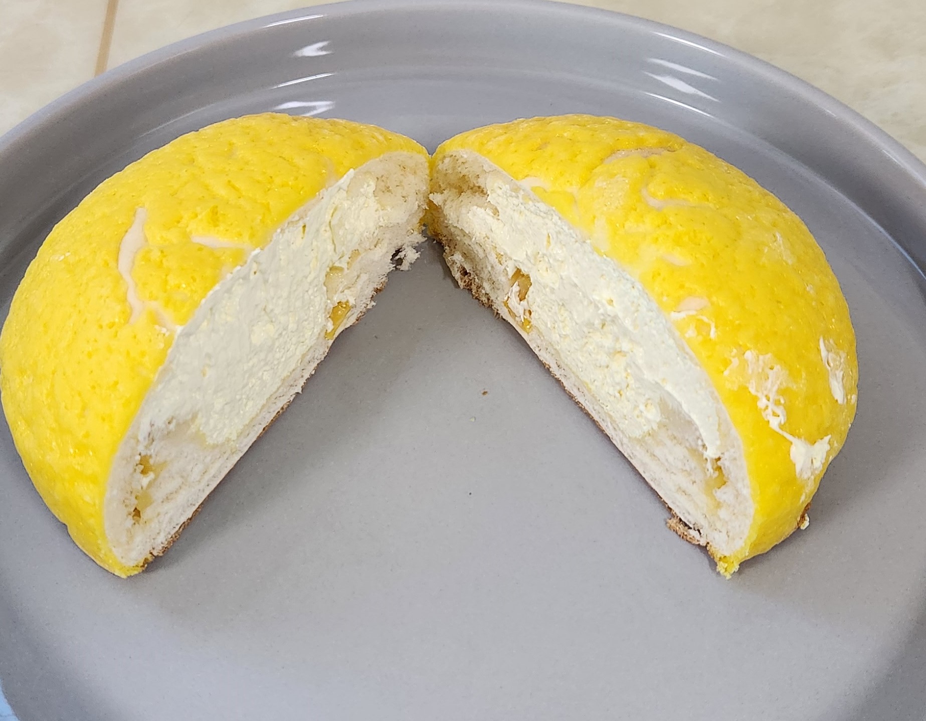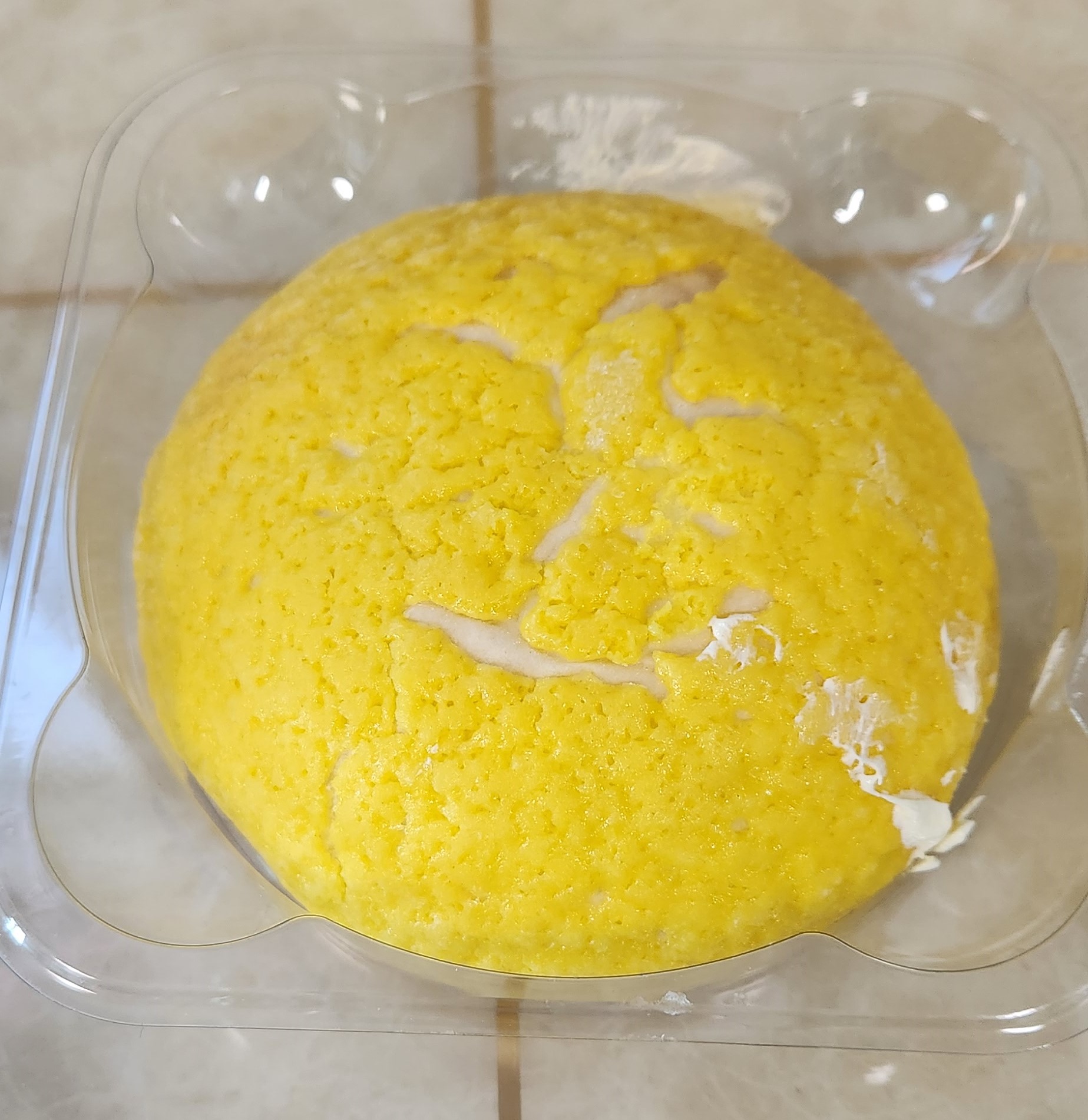 다른 연세우유 크림빵들은 겉면이 그냥 빵인데 옥수수크림빵은 겉면이 소보루처럼 옥수수쿠키로 덮혀있다.