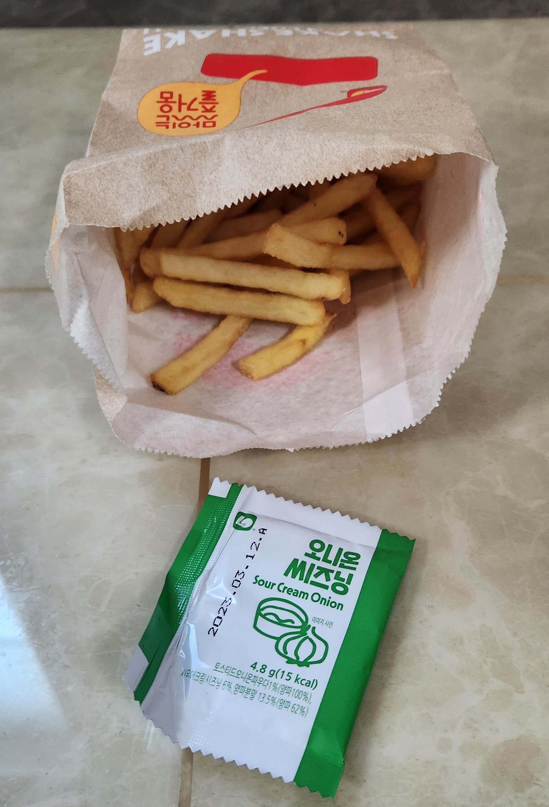 (지금 생각해보니 롯데리아 양념감자 감자튀김이랑 같이 나오는 시즈닝을 조금 남겨 양념감자 과자에 조금 뿌려서 먹어 볼 걸 그랬다. 다음에 기회가 된다면 그렇게 먹어봐야겠다.)