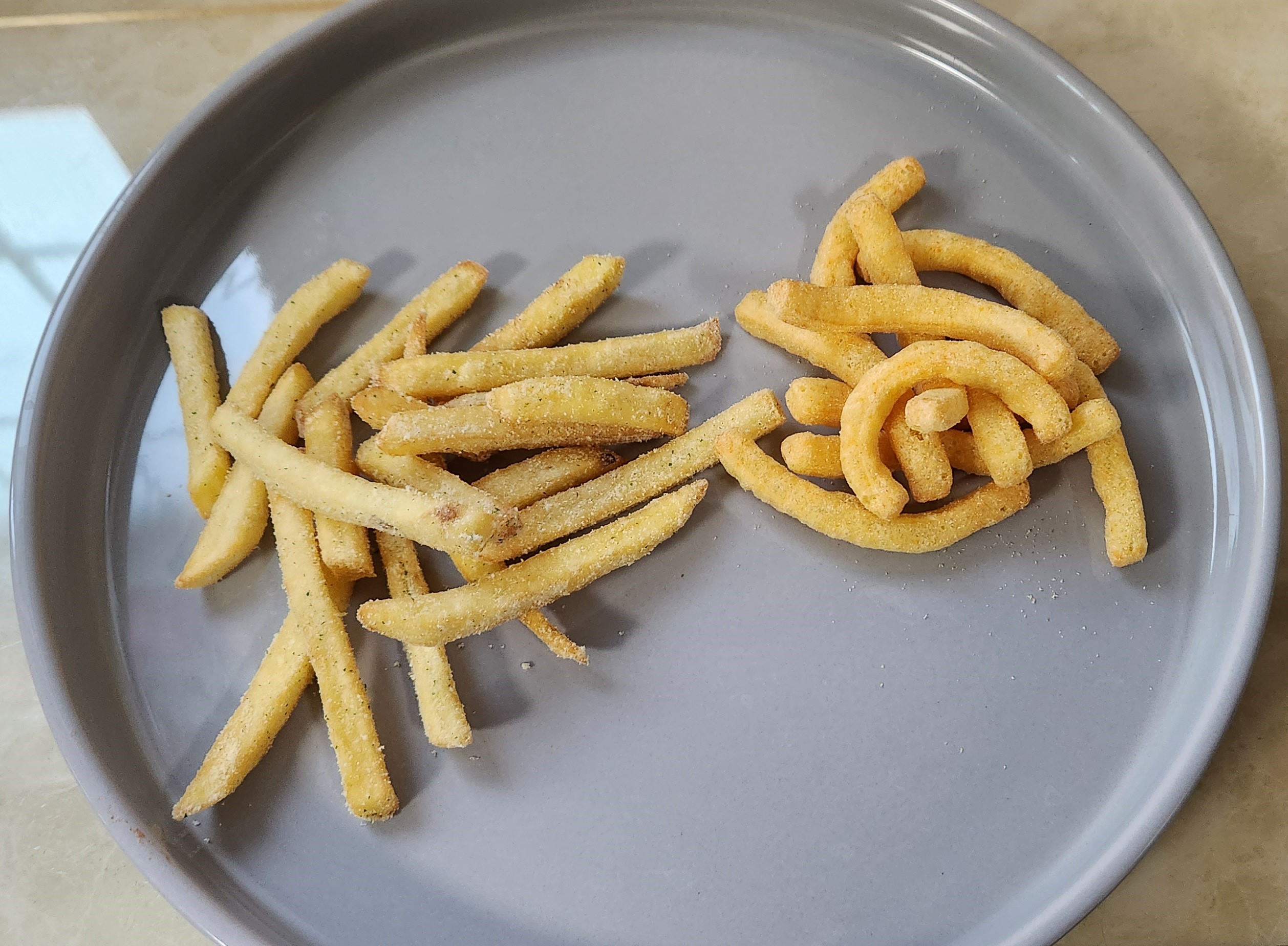 감자튀김이랑 양념감자 과자를 같이 먹으면 식감이 달라서 딱히 더 맛있다는 느낌은 들지 않는다.