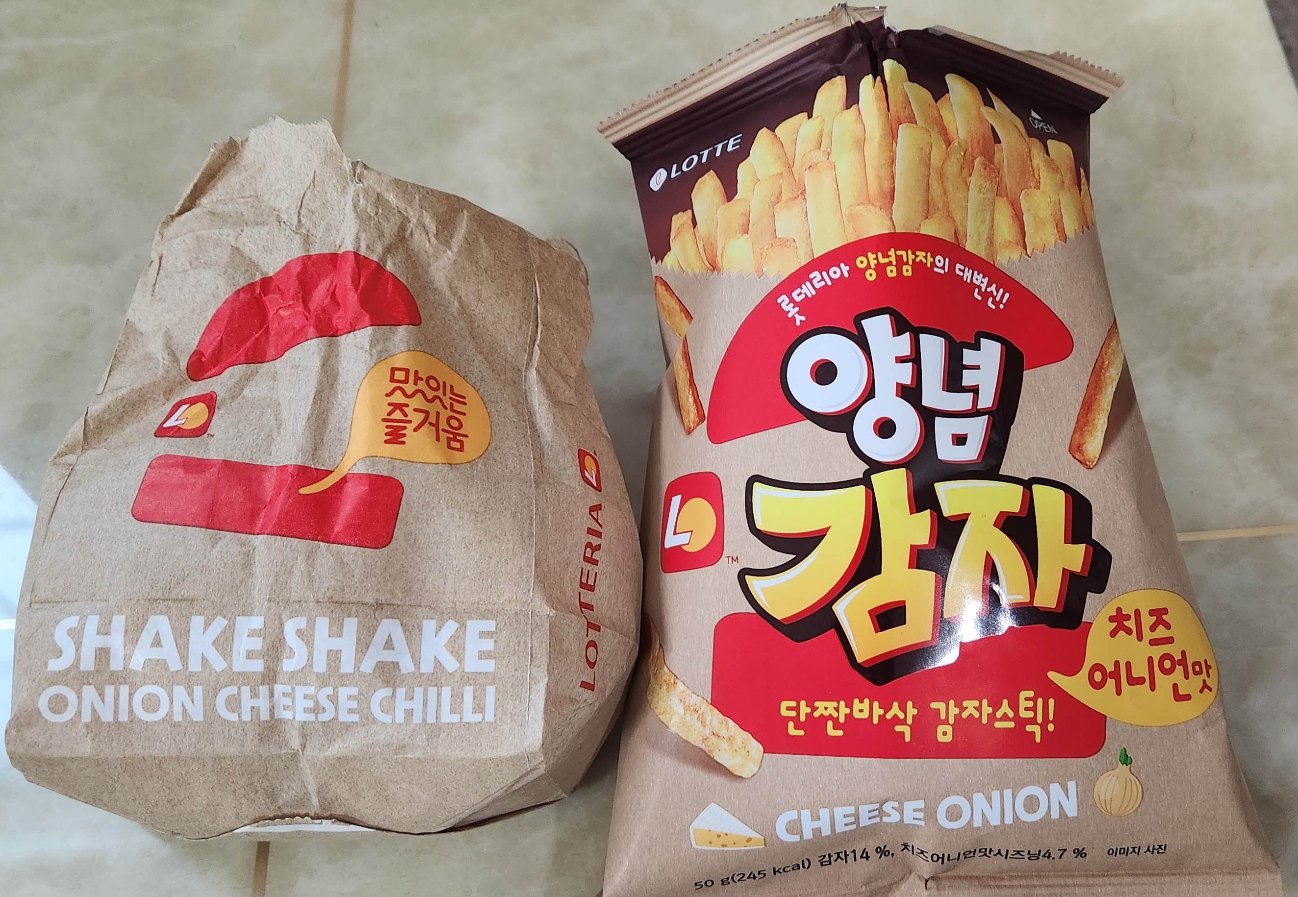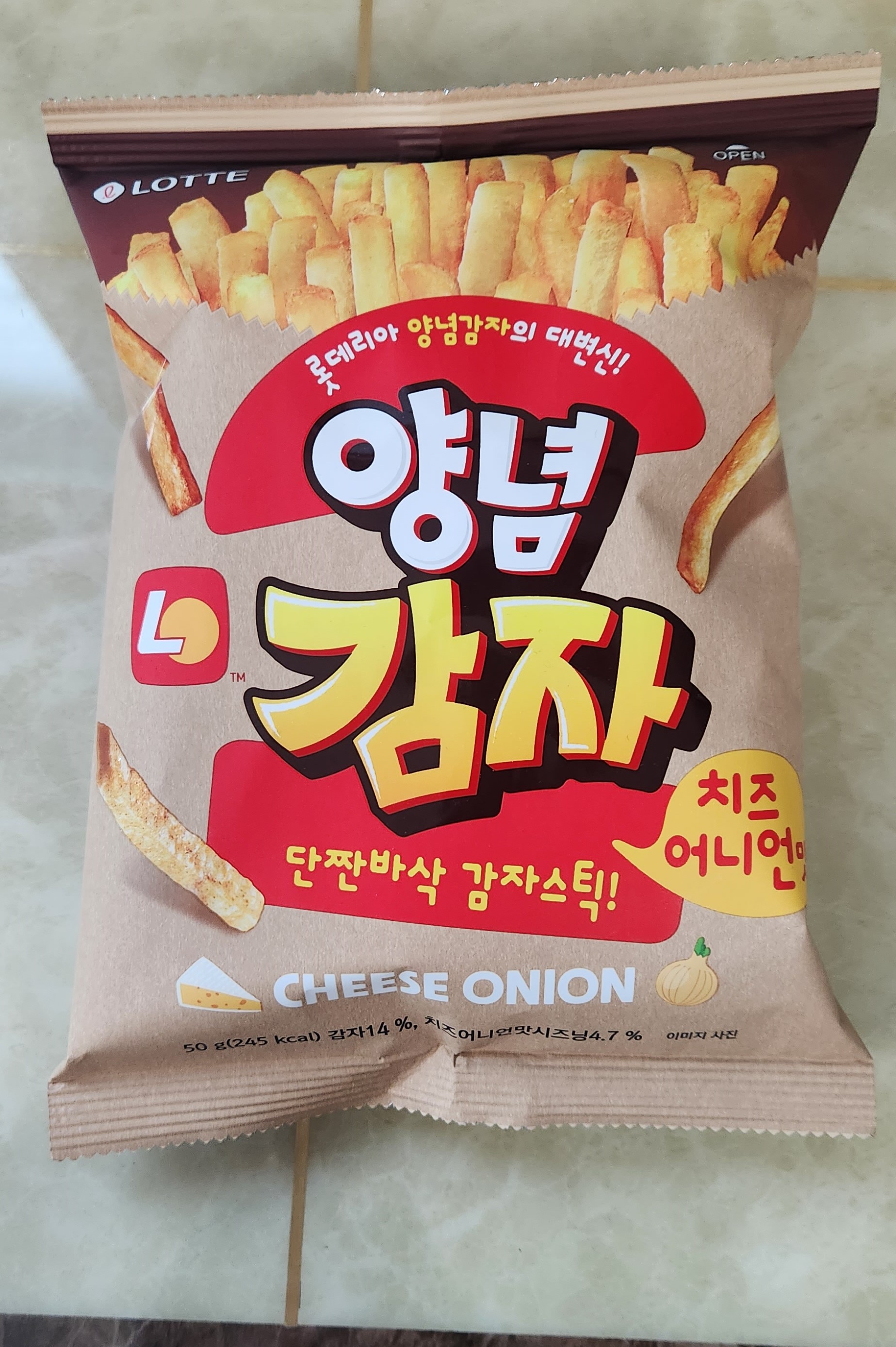 롯데에서 내 최애 감자튀김인 롯데리아 양념감자를 모델로 양념감자 치즈어니언 맛 과자가 나왔다고 해서 먹어봤다.