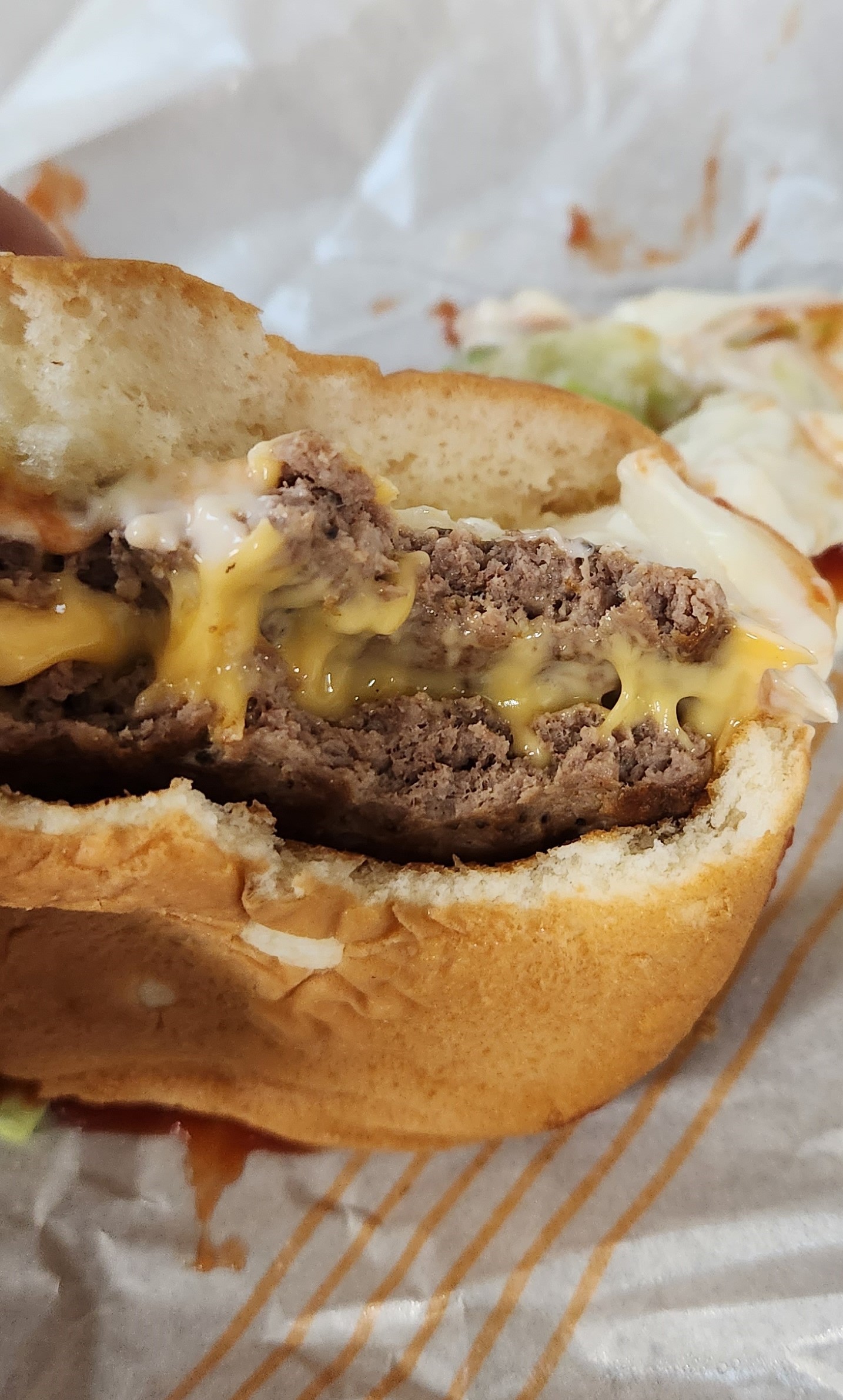 패티와 패티 사이에도 치즈가 잘 들어 차 있다.