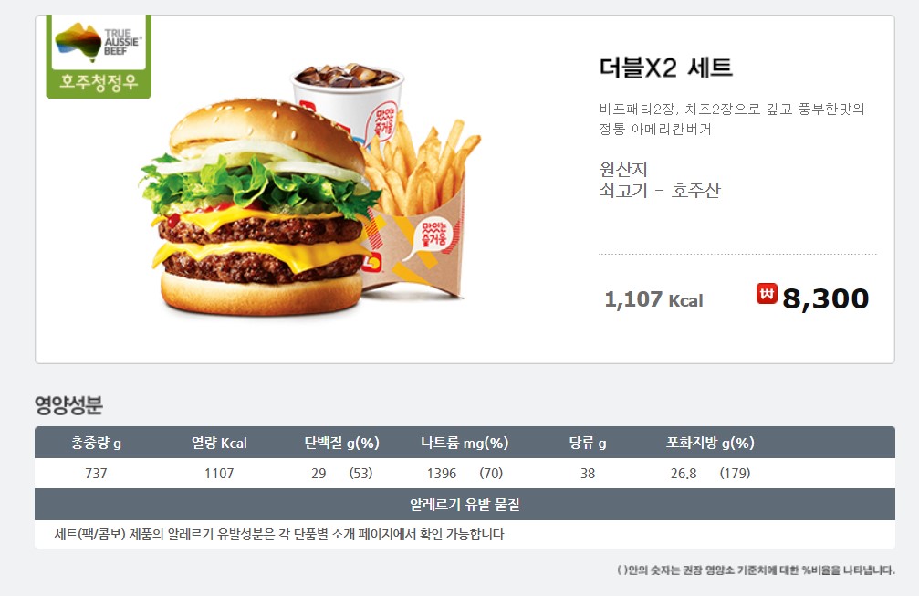 참고로 세트의 가격은 8,300원, 칼로리는 1,107kcal.