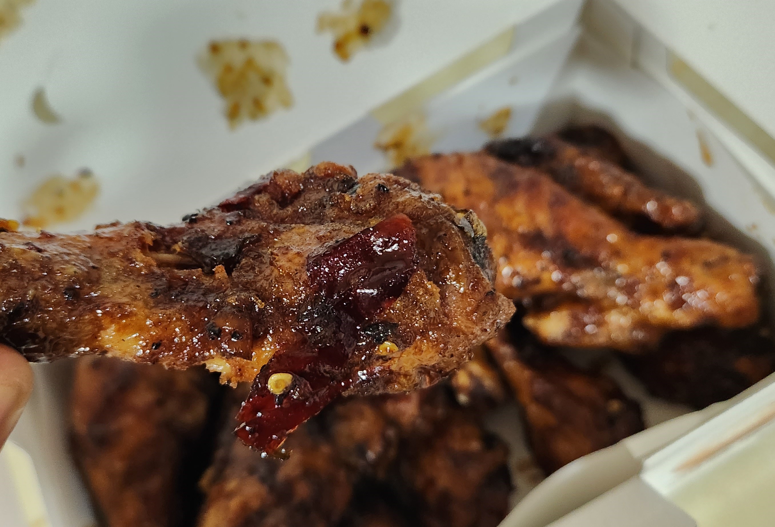 홈페이지보니 '다섯가지 맛과 향을 내는 오향에 맛 간장과 흑임자, 청양고추를 더한 깊은 풍미로 날개와 다리를 함께 즐길수 있는 메뉴'라고 한다. 오지 않는 당신을 기다리며 맛을 상상해본다.