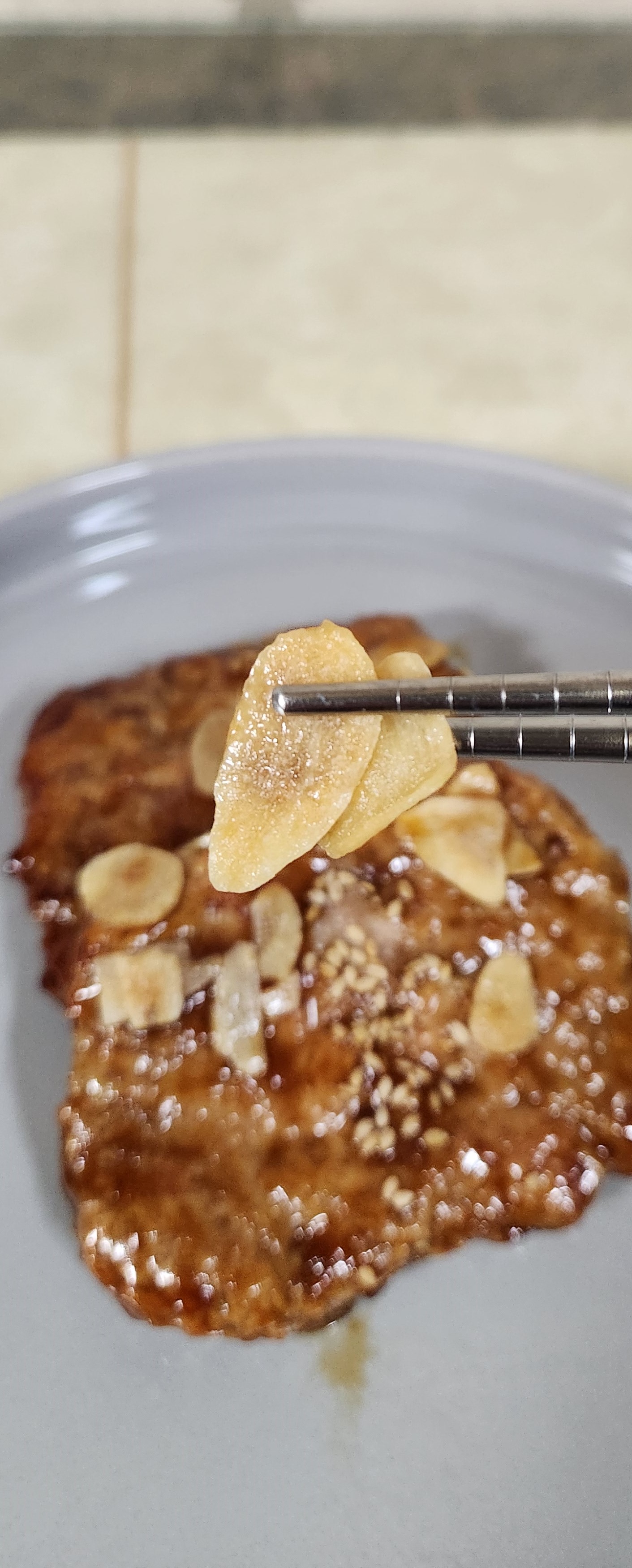 마늘은 슬라이스해서 후레이크 느낌으로 튀긴 건 줄 알았는데 그냥 익은 마늘슬라이스다.