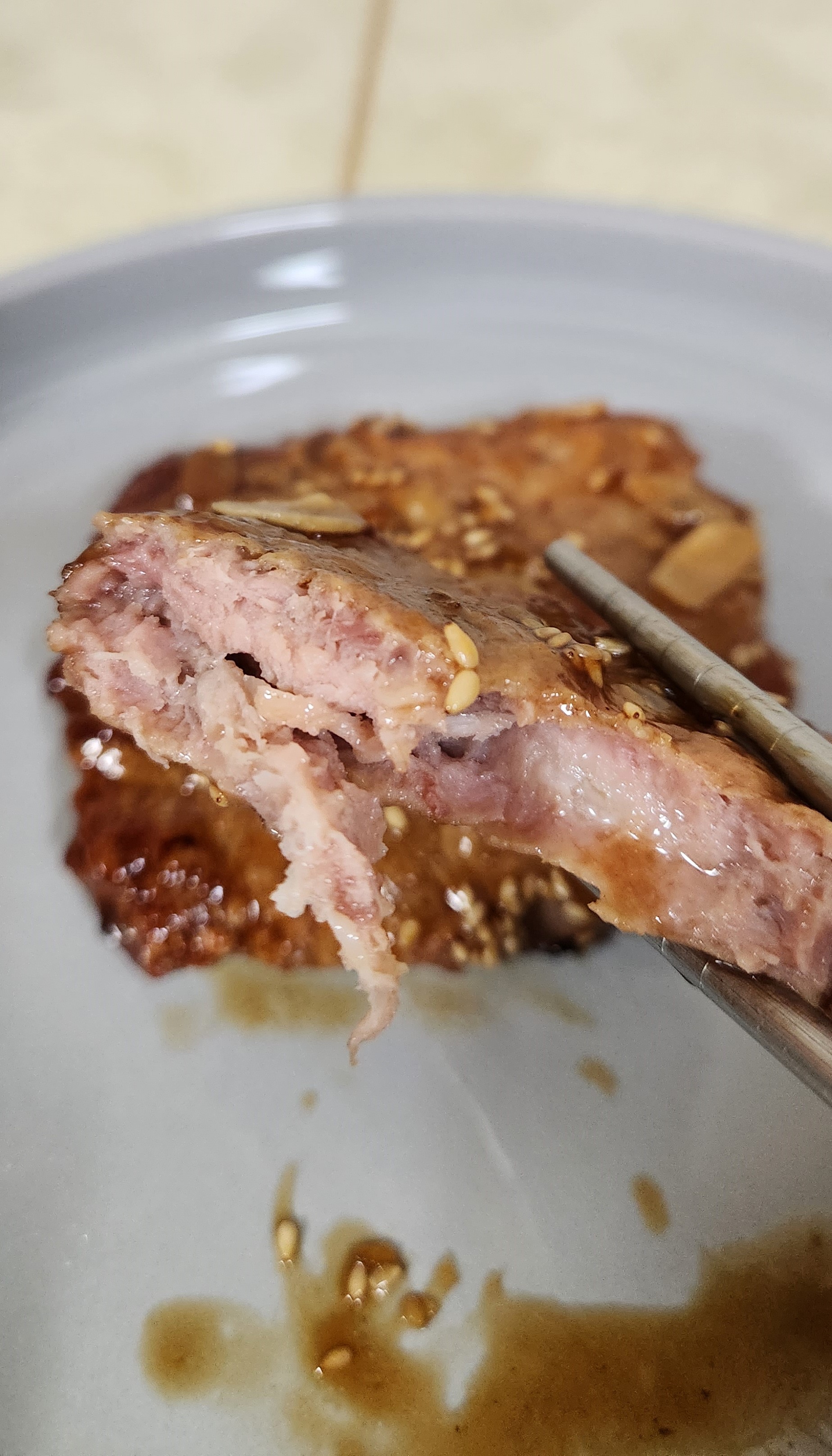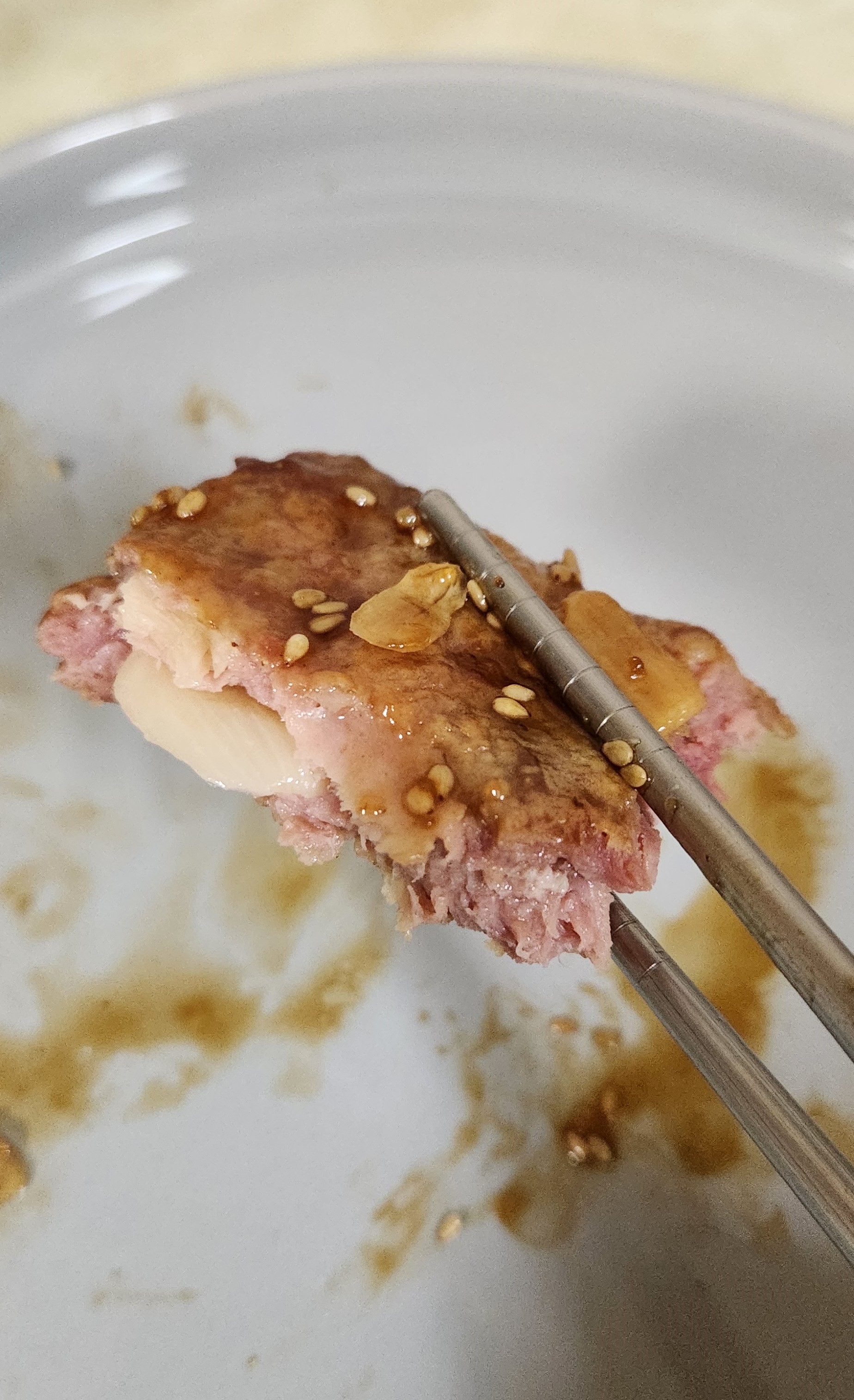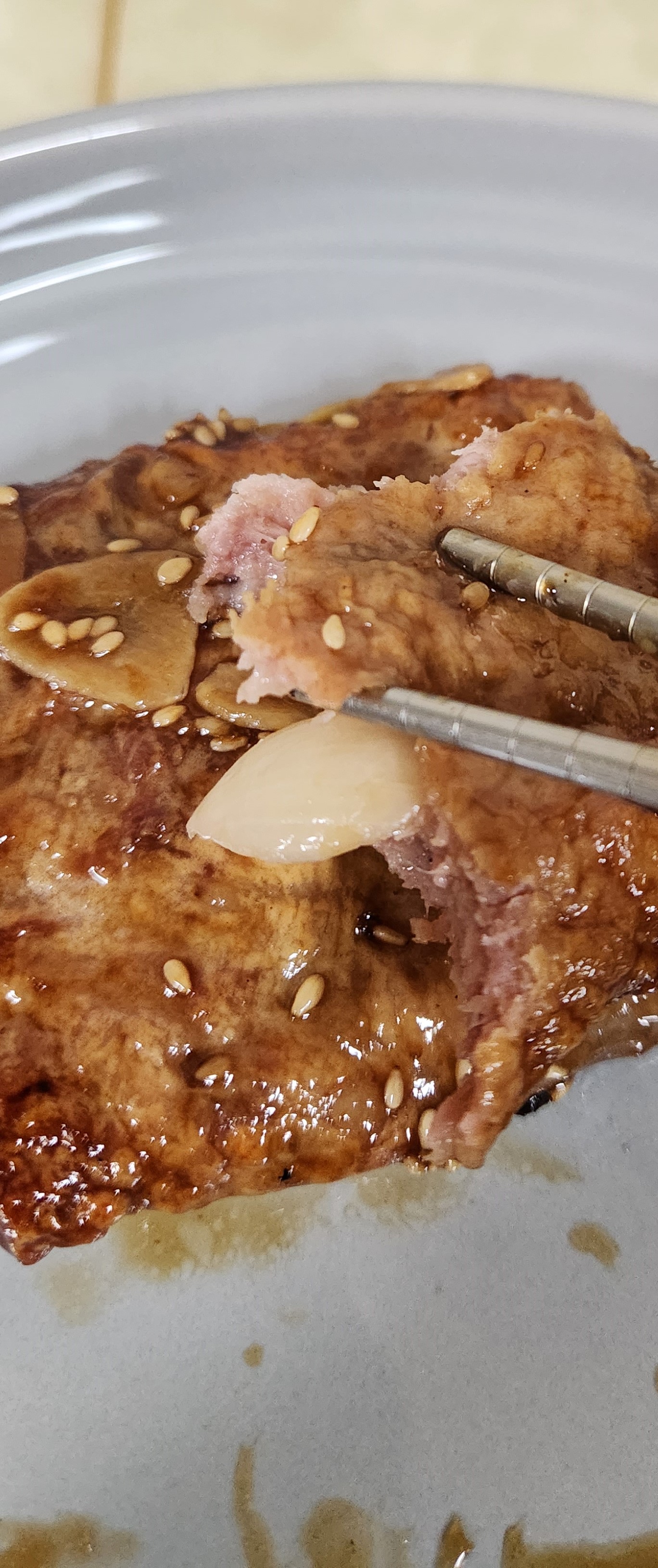 두번째 떡갈비 안에서도 마늘슬라이스가 하나 나왔다.