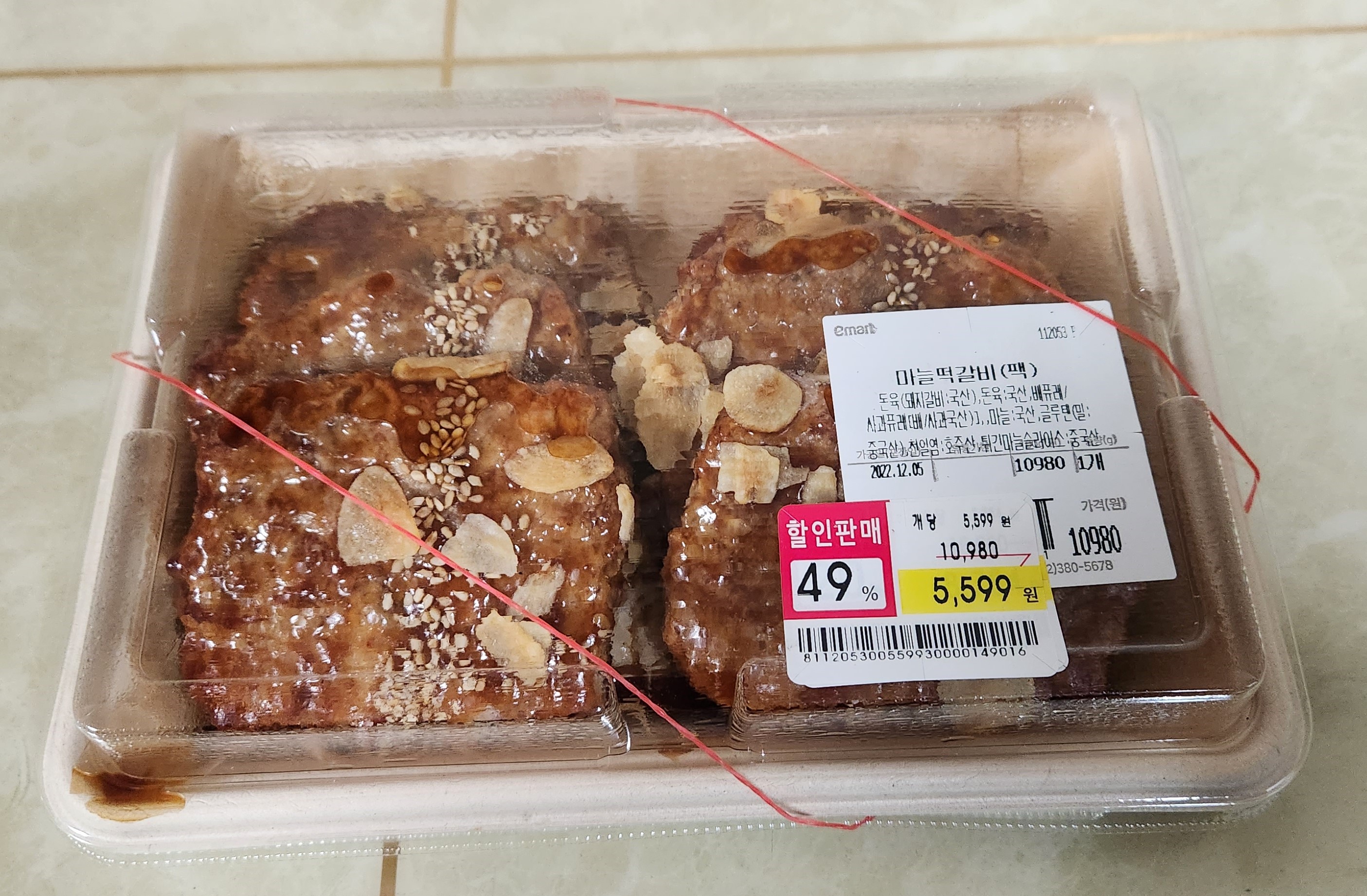 장을 보러 갔는데 폐장 시간이 가까워져서 그런지 이마트 키친델리에서 마늘떡갈비를 49%나 할인하길래 앞뒤 안 재고 집어왔다.